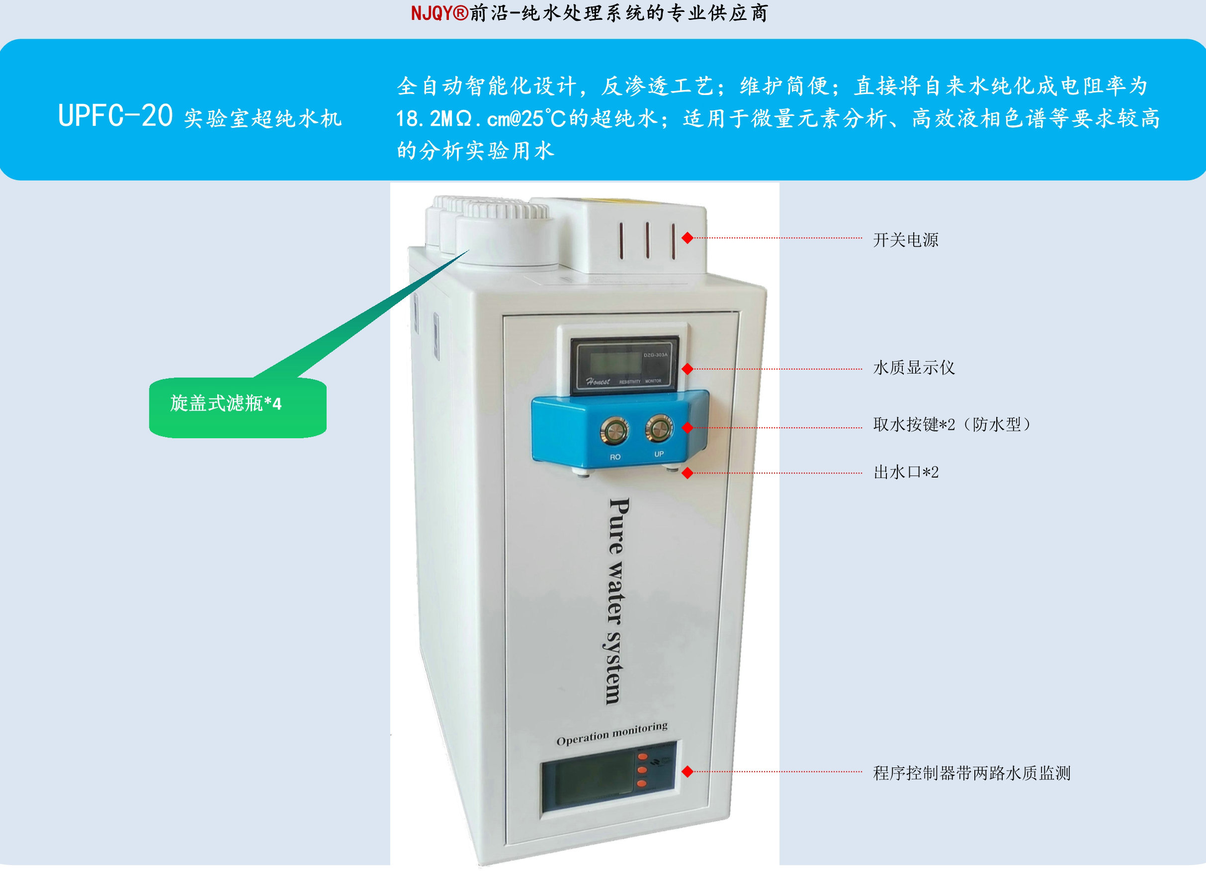 UPFC-20超純水機(jī)智能化設(shè)計(jì),輕便小巧,臺(tái)上式安裝;產(chǎn)水量小,適合用水量不大的用戶(hù);操作簡(jiǎn)單,全面適時(shí)的運(yùn)行狀態(tài)監(jiān)控;兩個(gè)取水口,分質(zhì)供水,滿足不同水質(zhì)需求,出水水質(zhì)為18.2MΩ超純水;超過(guò)GB6682-2008一級(jí)水標(biāo)準(zhǔn);管路和壓力部件采用旋蓋式特殊設(shè)計(jì),進(jìn)出水口均位于濾瓶底部,可直接在設(shè)備頂部更換耗材,不需拆開(kāi)機(jī)箱;主要用于微量元素分析、高效液相色譜等要求較高的分析實(shí)驗(yàn)用水